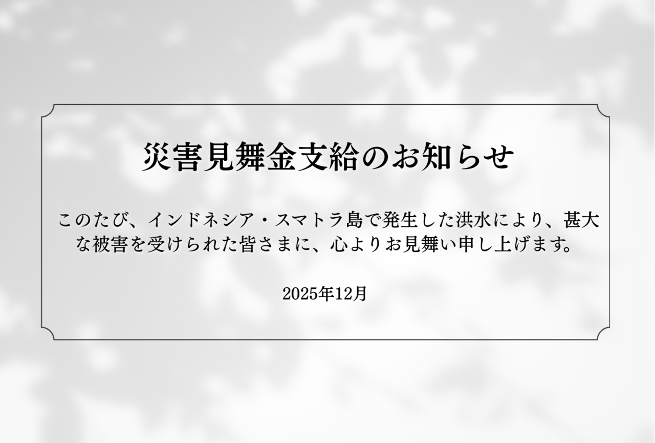 このたび、インドネシア・スマトラ島で発生した洪水により、甚大な被害を受けられた皆さまに、心よりお見舞い申し上げます。