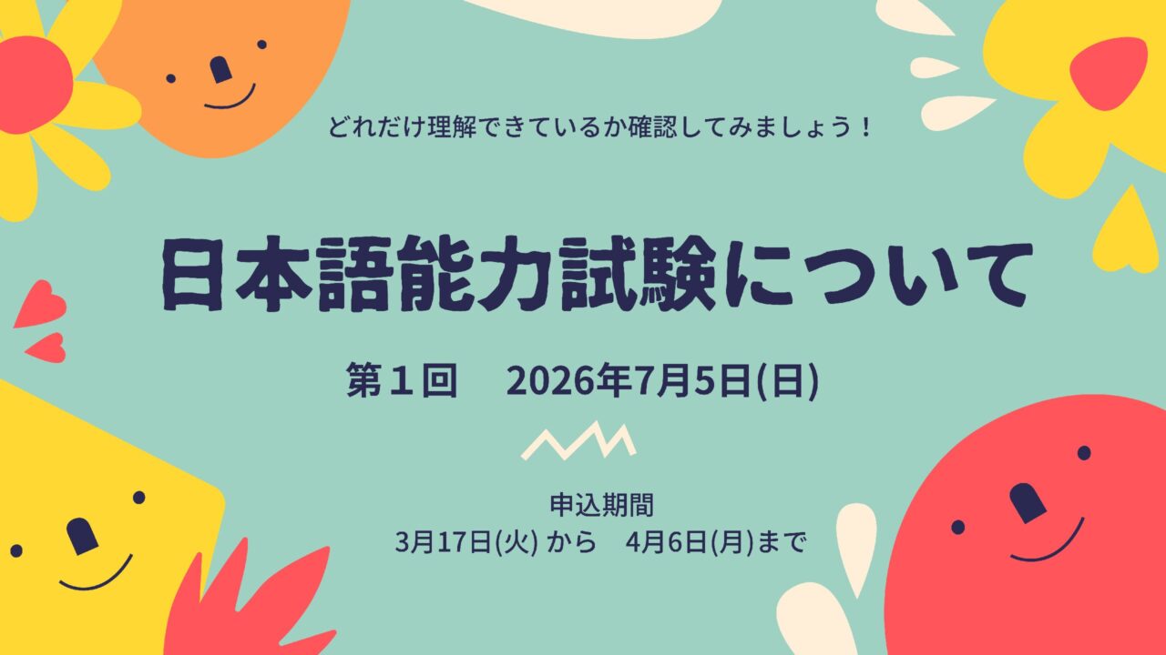 JLPT2026年第1回 日本語能力試験の実施日は 7月5日㈰ です。